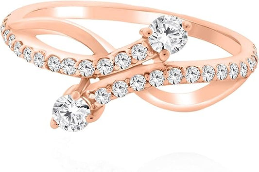 0.50 Ct Round Shape 2 Natural Diamond In Center With 28 white Side diamonds (IJ/I2-I3) Crafted In 10K Rose White And Yellow Gold Engagement wedding Ring For Women