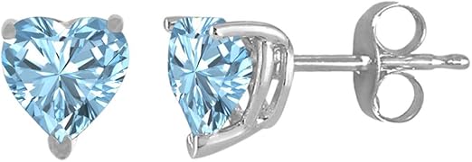 AoneJewelryHeart Aquamarine Earrings for Women in 14k White Gold (4mm) Prong-Setting Gemstone Wedding Jewelry Collection