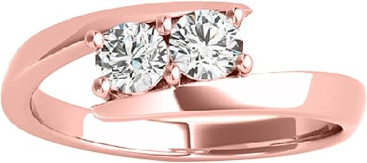 Diamond Engagement Ring For Women 1 Carat Brilliant Round Lab Grown Diamond 2 Stone Engagement Aniversary Ring Band In 10K Solid Rose Yellow White Gold By AoneJewelry Collection