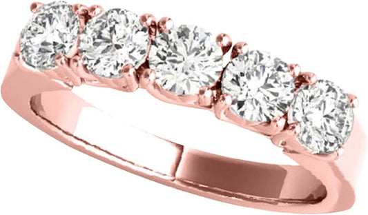 Diamond Wedding Band For Women 0.50 & 1.0 Carat Brilliant Round Lab Grown Diamond 5-Stone Engagement Aniversary Ring Band In 10K Solid Rose Yellow White Gold | Aone Jewelry Collection