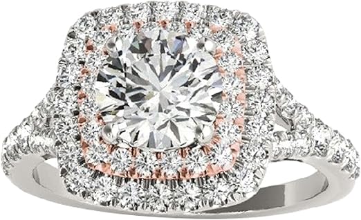 Diamond Halo Engagement Ring For Women 0.75 Carat Brilliant Round Lab Grown Diamond 57 Stone Engagement Aniversary Ring Band In 10K Solid Rose & Yellow Gold By AoneJewelry Collection