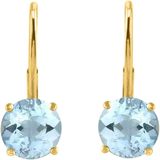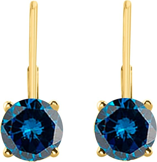 Blue Diamond Leverback Earring for Women | 14K White & Yellow Gold 0.75 Carat 2 Stone Round Cut Prong Setting Genuine Diamond Wedding Jewelry Collection
