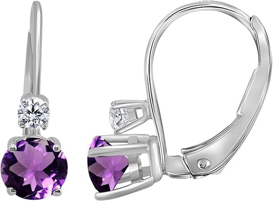 Gemstone & Diamond Leverback Earring for Women| 14K Rose,White & Yellow Gold 1.10 Carat 4 Stone Round Cut Prong Setting Genuine Diamond Wedding Jewelry Collection