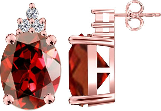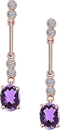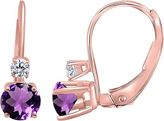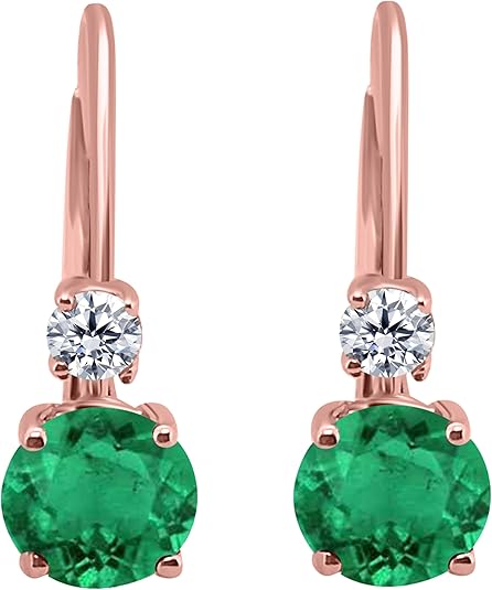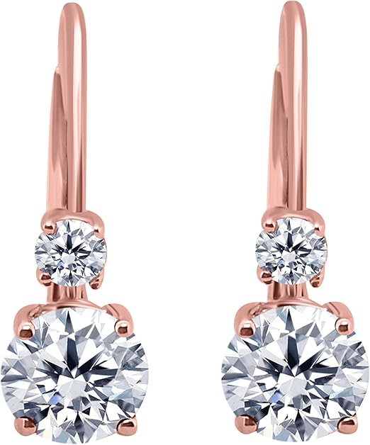 AoneJewelry Gemstone & Diamond Leverback Earring for Women| 14K Rose Gold 2.61 Carat 10 Stone Round Cut Prong Setting Genuine Diamond Wedding Jewelry Collection