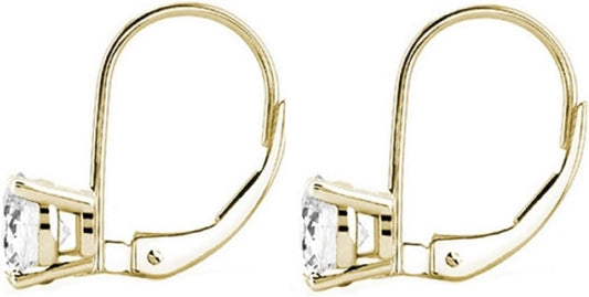 0.25 Carats Round White Diamond Leverback Earrings for Women in 14K White Yellow Gold Prong-Setting