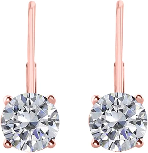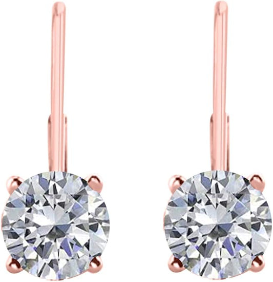 0.30 Carats Round White Diamond Leverback Earrings for Women in 14K White Rose Yellow Gold Prong-Setting