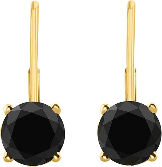 Black Diamond Leverback Earring for Women | 14K White & Yellow Gold 3 Carat 2 Stone Round Cut Prong Setting Genuine Diamond Wedding Jewelry Collection