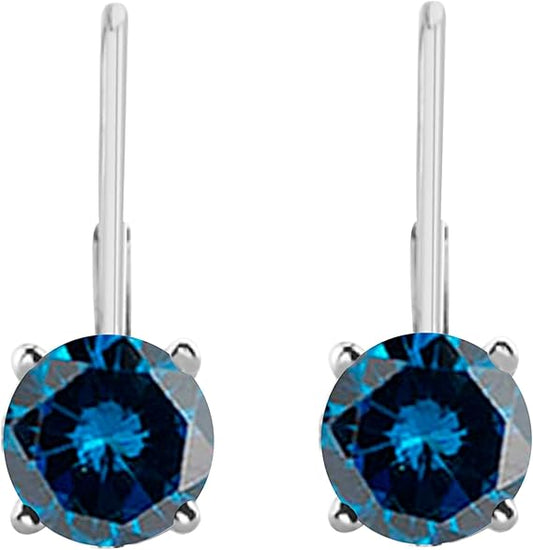Blue Diamond Leverback Earring for Women| 14K White & Yellow Gold 0.25 Carat 2 Stone Round Cut Prong Setting Genuine Diamond Wedding Jewelry Collection