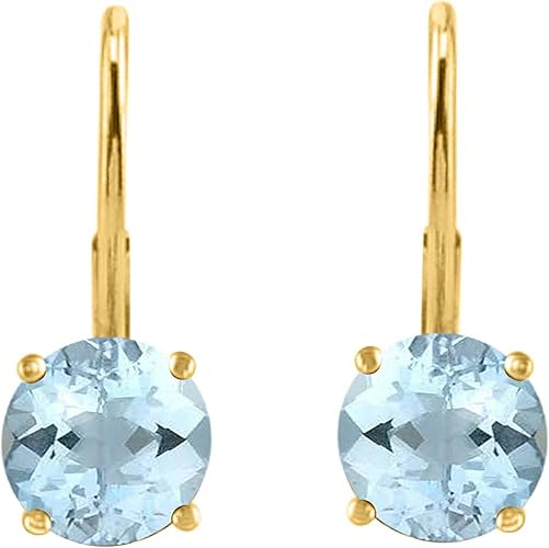 1.00 Carats Round Blue-Diamond Leverback Earrings for Women in 14K Yellow Gold | Prong-Setting Gemstone Wedding Jewelry Collection