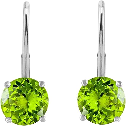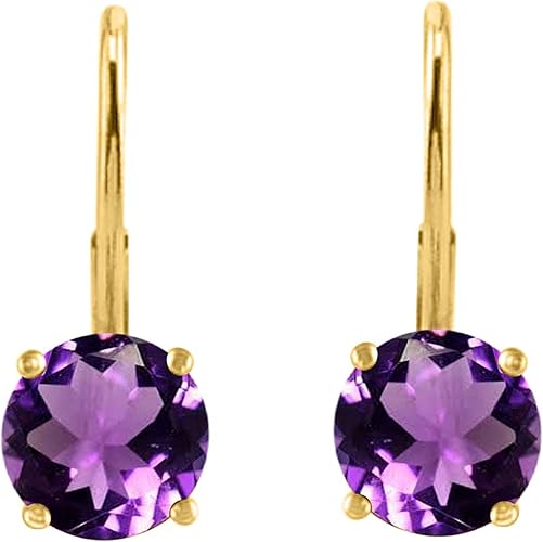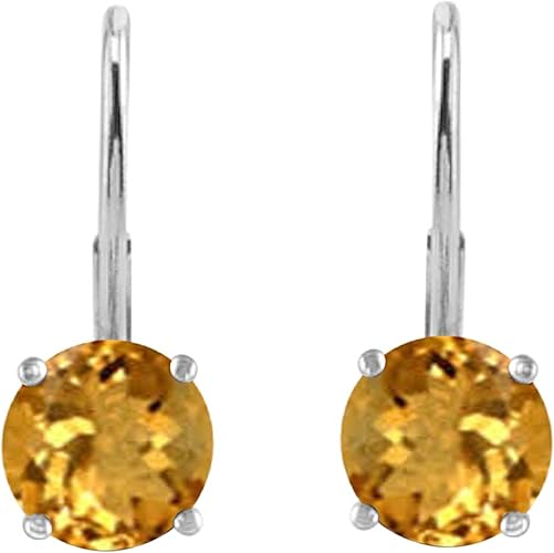 AoneJewelry Gemstone Leverback Earring for Women| 14K Gold 7mm 1.65 Carat 2 Stone Round Cut Prong Setting Genuine Diamond Wedding Jewelry Collection