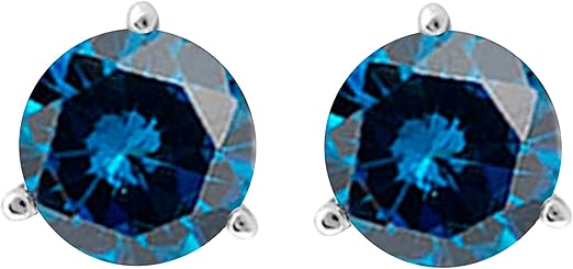 AoneJewelry0.75 CaratsW Round Blue Diamond Martini Stud Earrings for Women In 14K White Gold Prong-Setting Gemstone Wedding Jewelry Collection