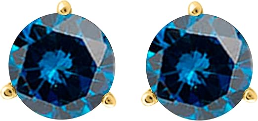 AoneJewelry0.30 CaratsW Round Blue Diamond Martini Stud Earrings for Women In 14K Yellow Gold Prong-Setting Gemstone Wedding Jewelry Collection