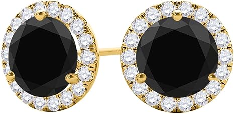 Black Diamond Studs Earrings For Women 1.50 Carat Natural Round Black Diamond With Natural Round White Diamond Studs Push Back Earrings For Ladies In 10K Solid Rose White Yellow Gold Best Jewelry Gift For Her By Aone Jewelry