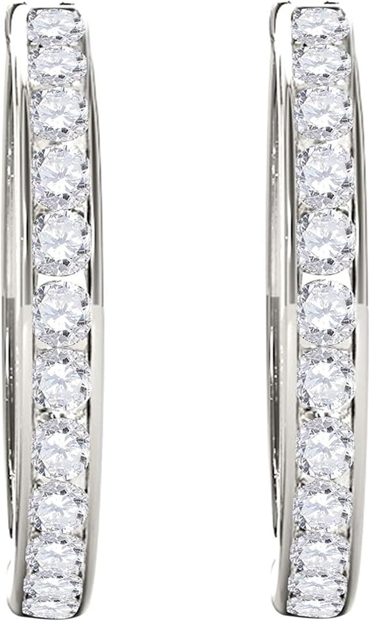 AoneJewelry1/2 Carat Natural Diamond (J-K/ I1-I2) Hoop Earrings for Women In 10K Gold Prong-Setting Gemstone Wedding Jewelry Collection