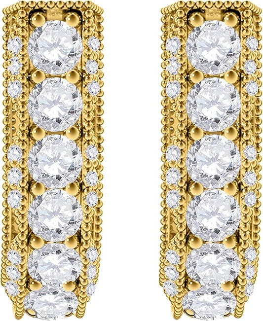 AoneJewelry1.00 Carat Round White Diamond Milgrained Hoop Earrings for Women In 14K Solid Gold Prong-Setting Gemstone Wedding Jewelry Collection