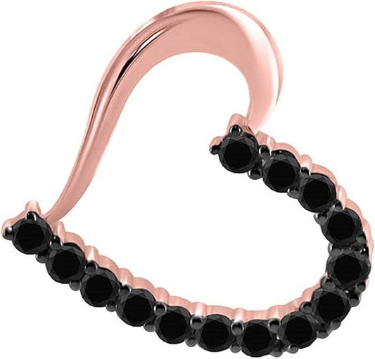 0.65 Carat Natural Black Diamond Stones Heart Shape Elegant Pendant Crafted In Rose Gold Plated Over 925 Sterling Silver For Women With Copmlementary 18" Box Chain