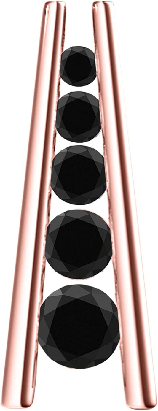 1.00 Carat 5 Stone Natural Black Diamond Straight Bar Design Pendant Necklace For Woman Crafted In 10k Rose White And Yellow Gold With 18" Gold Plated Over 925 Sterling Silver Box Chain