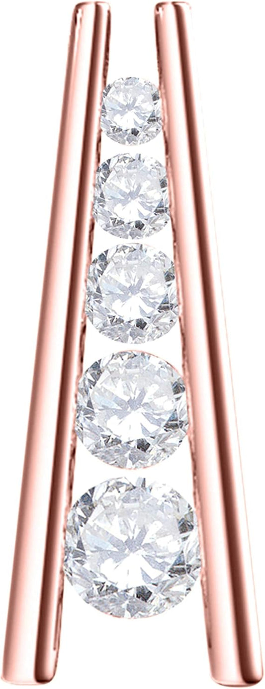 0.50 Carat 5 Stone Natural White Diamond Straight Bar Design Pendant Necklace For Woman Crafted In 10k Rose White And Yellow Gold With 18" Gold Plated Over 925 Sterling Silver Box Chain