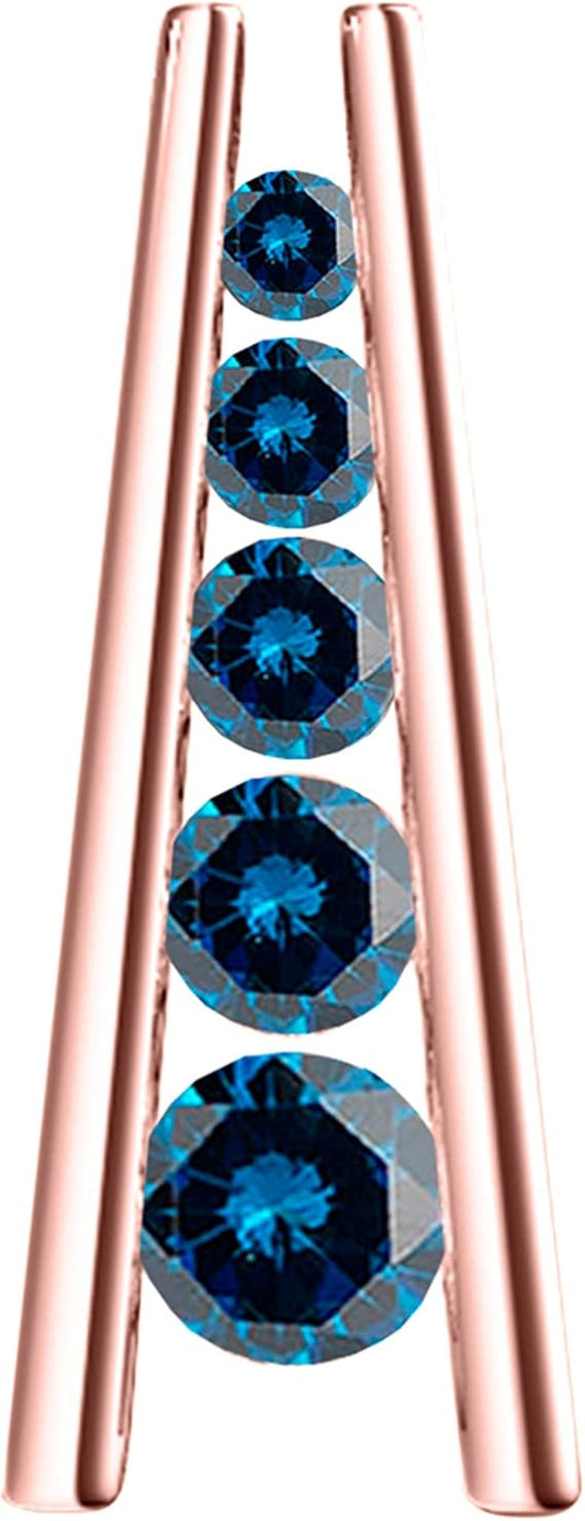 1.00 Carat 5 Stone Natural Blue Diamond Straight Bar Design Pendant Necklace For Woman Crafted In 10k Rose White And Yellow Gold With 18" Gold Plated Over 925 Sterling Silver Box Chain