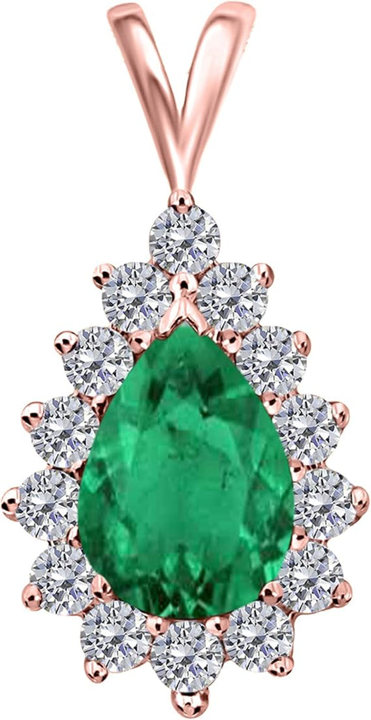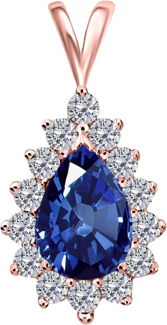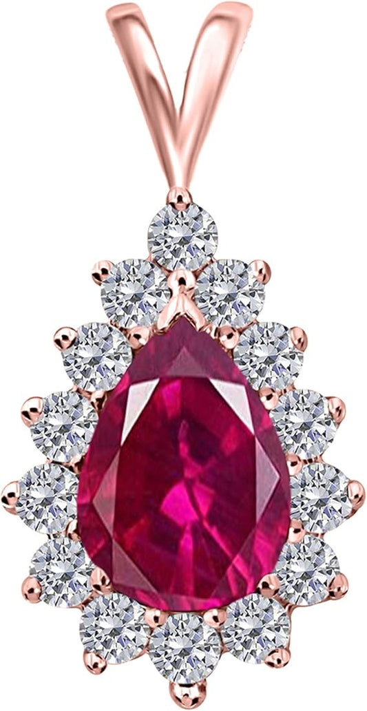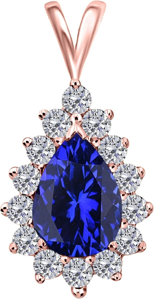 1.55 Carat Pear Shape Gemstone With Diamonds Tear Drop Design Pendant Necklace For Woman Crafted In 10k Rose White And Yellow Gold With 18" Gold Plated Over 925 Sterling Silver Box Chain
