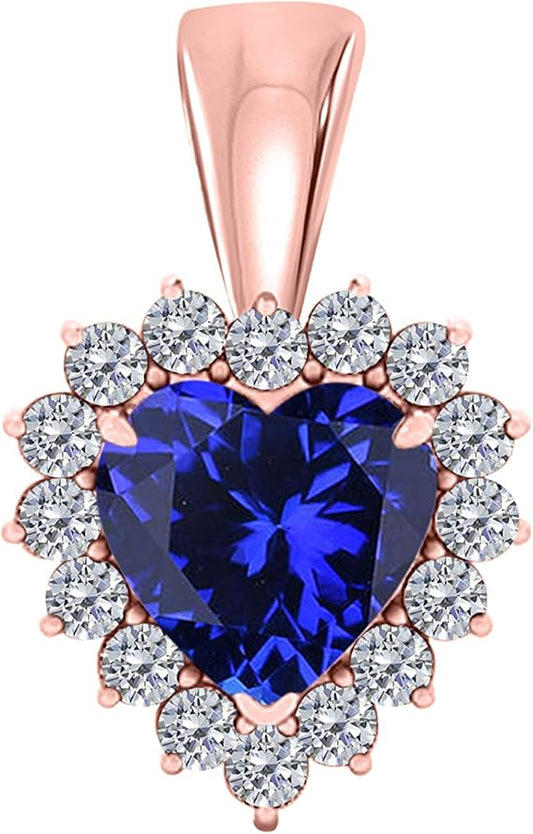 3/4 Carat Heart Shape Created Tanzanite Gemstone In Center With 16 Side White Diamond Pendant Necklace For Woman Crafted In 10k Rose White & Yellow Gold With 18" Gold Plated Over 925 Sterling Silver Box Chain