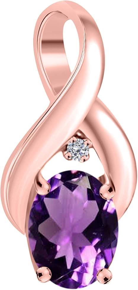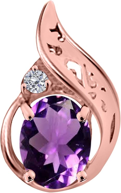 1.25 Carat Oval Shape Gemstone In Center With Side Diamond & Design Pendant Necklace For Woman Crafted In 10k Rose Gold With 18" Gold Plated Over 925 Sterling Silver Box Chain