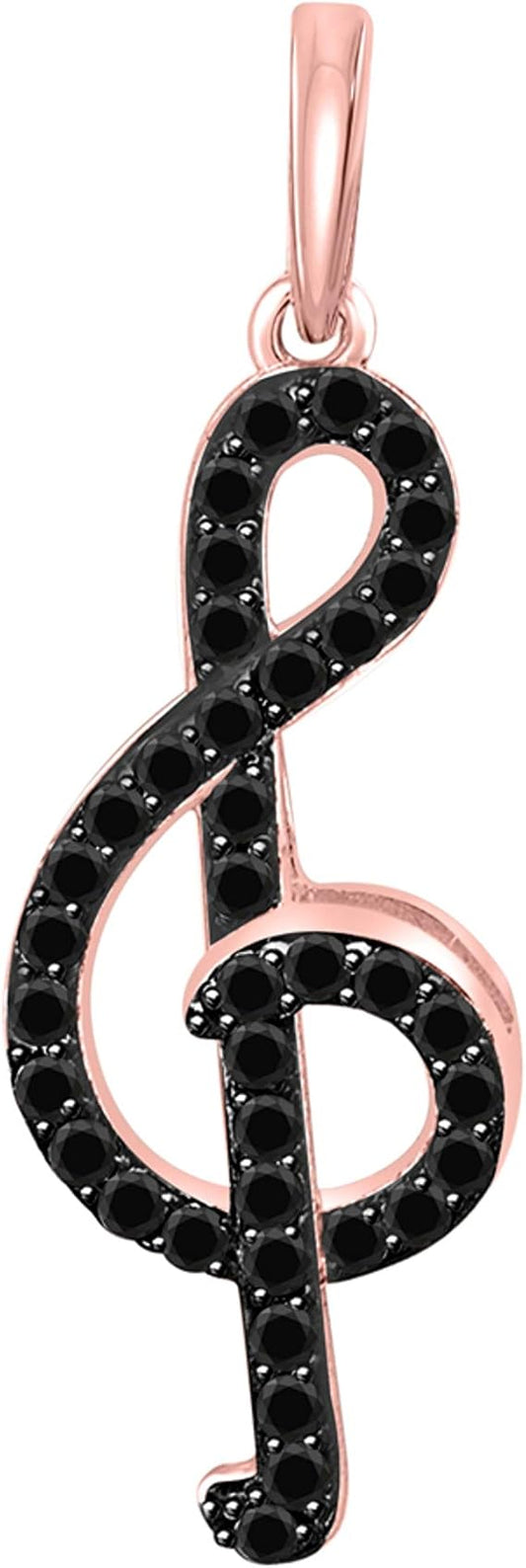1/2 Carat Natural Black Diamond Music Knot Design Pendant Necklace For Woman Crafted In 10k Rose White And Yellow Gold With 18" Gold Plated Over 925 Sterling Silver Box Chain