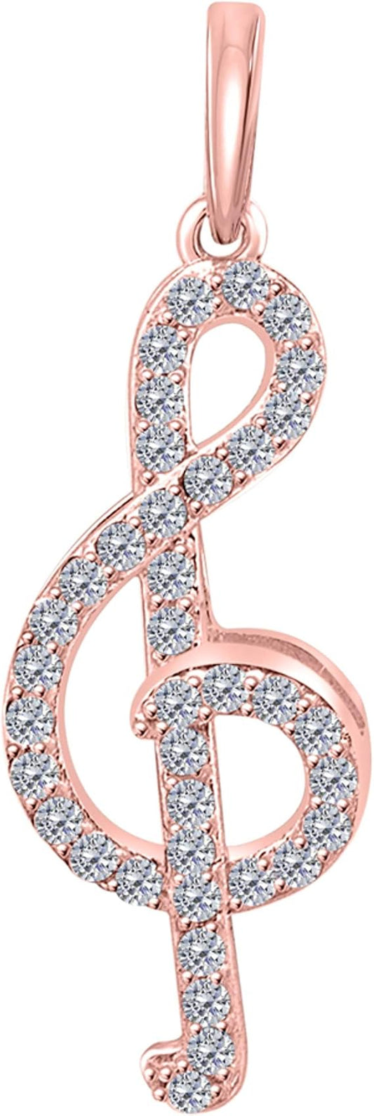 1/2 Carat Natural White Diamond Music Knot Design Pendant Necklace For Woman Crafted In 10k Rose White And Yellow Gold With 18" Gold Plated Over 925 Sterling Silver Box Chain