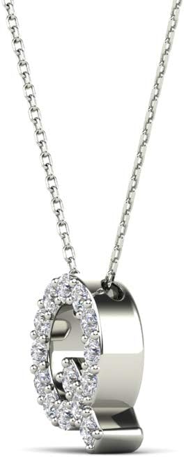 AoneJewelry 0.14 Carat Natural White Diamond Initial Q Pendant Necklace For Women In 14K Yellow and White Gold with 18" Gold Cable Chain