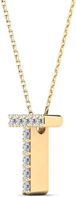 AoneJewelry 0.10 Carat Natural White Diamond Initial T Pendant Necklace For Women In 14K Yellow and White Gold with 18" Gold Cable Chain