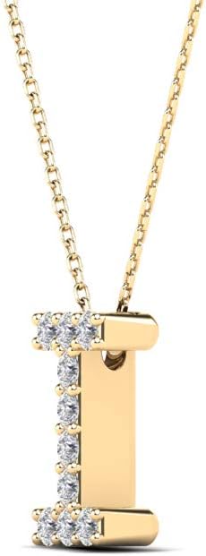 AoneJewelry 0.10 Carat Natural White Diamond Initial I Pendant Necklace For Women In 14K Yellow and White Gold with 18 Inch Gold Cable Chain