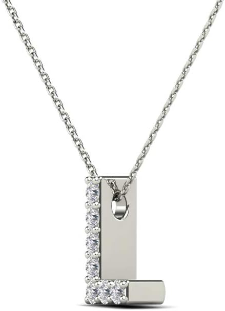 AoneJewelry 0.07 Carat Natural White Diamond Initial L Pendant Necklace For Women In 14K Yellow and White Gold with 18" Gold Cable Chain