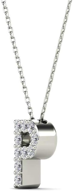 AoneJewelry 0.10 Carat Natural White Diamond Initial P Pendant Necklace For Women In 14K Yellow and White Gold with 18" Gold Cable Chain