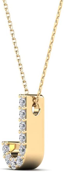 AoneJewelry 0.09 Carat Natural White Diamond Initial J Pendant Necklace For Women In 14K Yellow and White Gold with Gold Plated 925 Sterling Silver 18" Box Chain