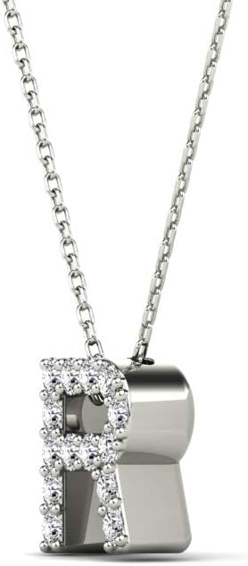AoneJewelry 0.12 Carat Natural White Diamond Initial R Pendant Necklace For Women In 14K Yellow and White Gold with 18" Gold Cable Chain.