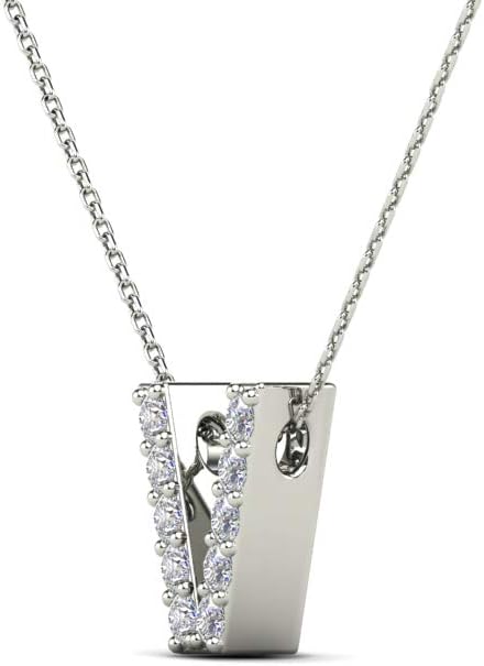 AoneJewelry 0.10 Carat Natural White Diamond Initial V Pendant Necklace For Women In 14K Yellow and White Gold with 18" Gold Cable Chain