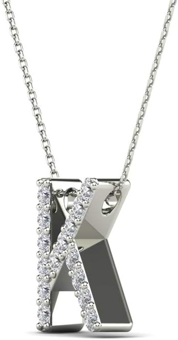 AoneJewelry 0.12 Carat Natural White Diamond Initial K Pendant Necklace For Women In 14K Yellow and White Gold with 18" Gold Cable Chain