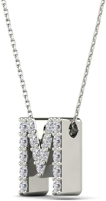 AoneJewelry 0.17 Carat Natural White Diamond Initial M Pendant Necklace For Women In 14K Yellow and White Gold with 18" Gold Cable Chain
