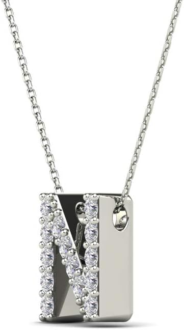 AoneJewelry 0.14 Carat Natural White Diamond Initial N Pendant Necklace For Women In 14K Yellow and White Gold with 18" Gold Cable Chain