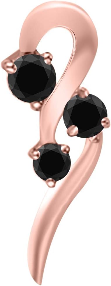 Three-Stone Black Curved Style 0.50 Ct. Diamond Pendant in 10k Rose, White & Yellow Gold., Best Valentinesday Gift
