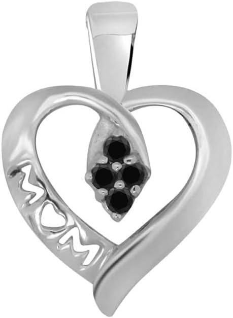 Natural Black Diamond In Center Heart Shape Mom Pendant For Your Mother Crafted In 925 Sterling Silver With 18" Gold Plated Over 925 Sterling Silver Box Chain