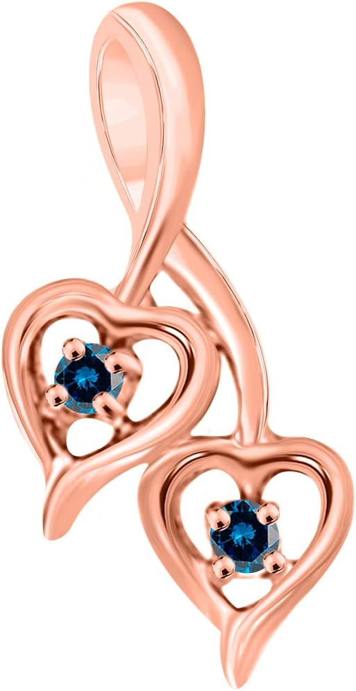 Blue Diamond 1.00 Carat Double Heart Pendant In 10K Solid Rose, White & Yellow Gold, Best Valentinesday Gift