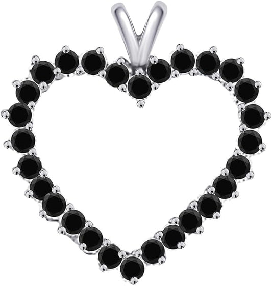 10K 2.00 Carat Black Diamond Heart Shaped Pendant In Rose, White & Yellow Gold, Best Valentinesday Gift