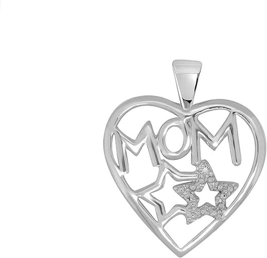 Natural White Diamond With Double Star Heart Shape Mom Pendant For Your Mother Crafted In 925 Sterling Silver With 18" Gold Plated Over 925 Sterling Silver Box Chain