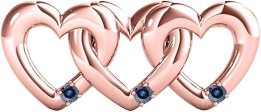 0.10 Carat Natural Blue Diamond With Three Beautiful Heart Combination Heart Shape Pendant Crafted In Rose White And Yellow Gold With 18" Box Chain Gold Plated Over 925 Sterling Silver For Women
