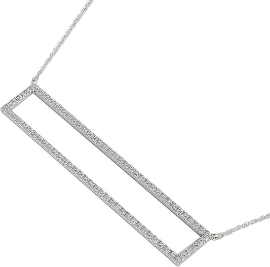 3/8 Carat Natural Round White Diamond Rectangle Shape Pendant Necklace For Women In 10K Rose, Yellow and White Gold with Gold Plated 925 Sterling Silver 18" Box Chain