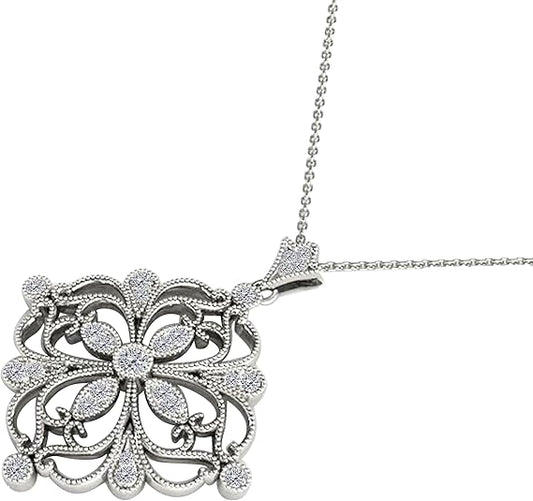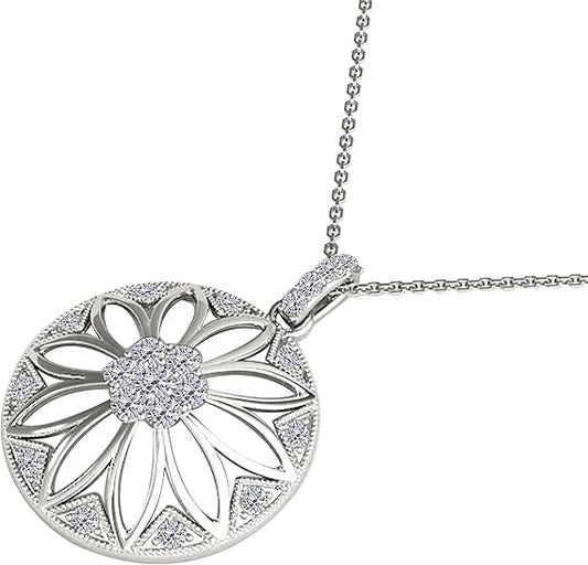 0.25 Carat Natural Round White Diamond Floral Pendant Necklace For Women In 10K Rose, Yellow and White Gold with Gold Plated 925 Sterling Silver 18" Box Chain