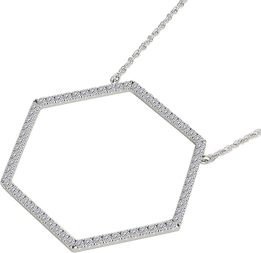 0.35 Carat Natural Round White Diamond Hexagon Shape Pendant Necklace For Women In 10K Rose, Yellow and White Gold with Gold Plated 925 Sterling Silver 18" Box Chain