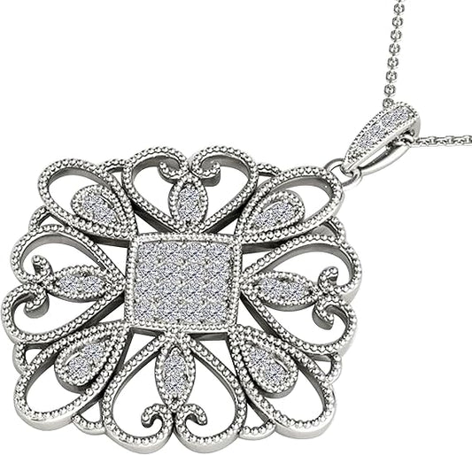 0.35 Carat Natural Round White Diamond Designer Pendant Necklace For Women In 10K Rose, Yellow and White Gold with Gold Plated 925 Sterling Silver 18" Box Chain