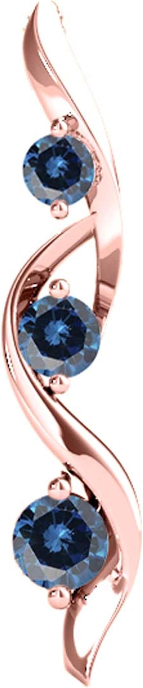 AoneJewelry 0.50 Carat Natural Blue Diamond 3-Stones Journey Pendant Necklace For Woman Crafted In 14k Rose White And Yellow Gold With 18" Gold Plated Over 925 Sterling Silver Box Chain